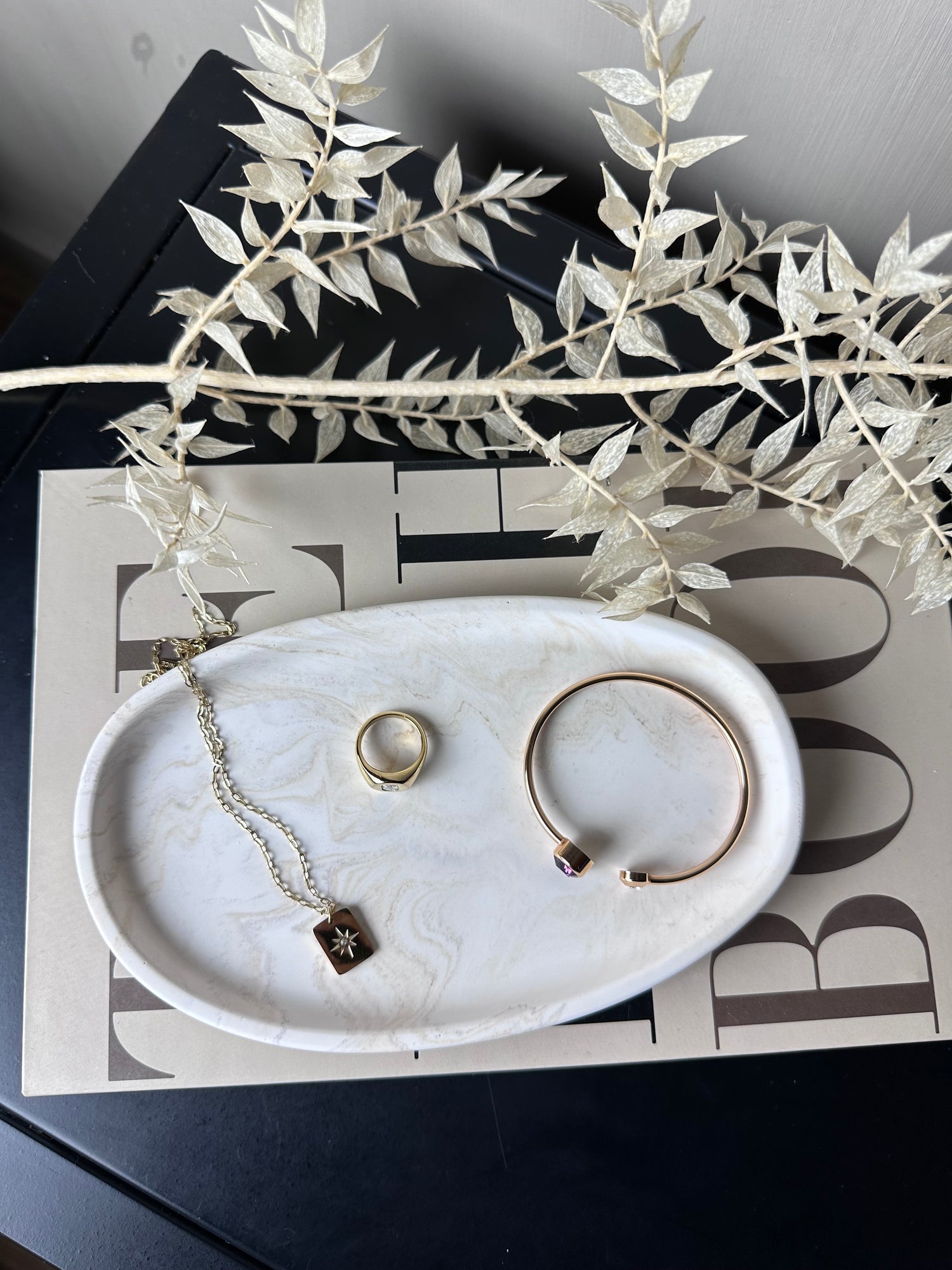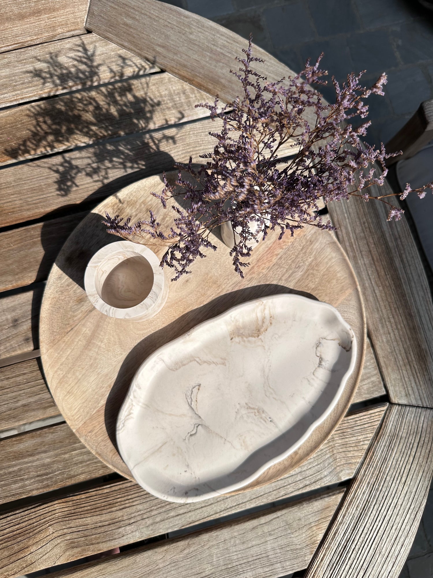 Bij onze trays werken we vooral met organische en asymmetrische vormen, waarbij we vooral aardtinten en het design van marmer benaderen.